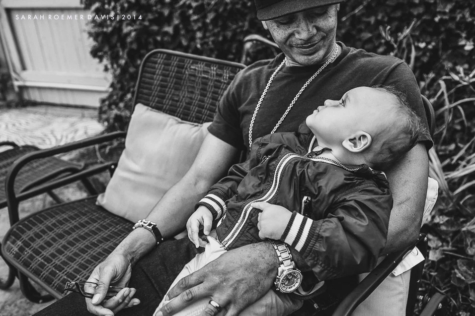 The other close buddy of yours is Daddy. Whenever he enters the room you go into a complete frenzy, first crawling toward him and then putting out your arms as a signal for him to pick you up. Daddy is convinced it's because he is the tallest member of the family and you get a birds eye view of all the action happening below. However, I'm convinced it's because it's Daddy - the most caring, loving and playful man any of us know.