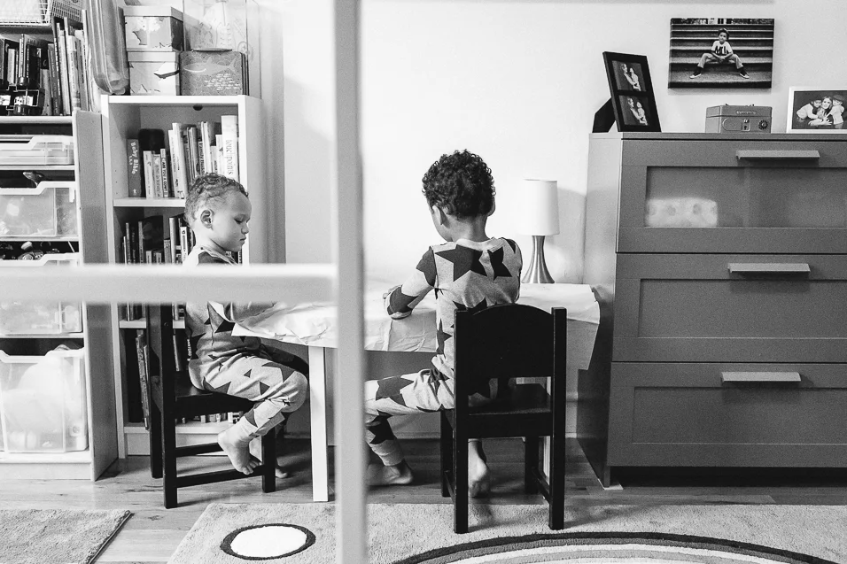 It was a given who would sleep in which bed. That's the blessing of having you guys two and a half years apart; there's no fighting over the top bunk. Grey was just happy for the upgrade. Once the mattresses arrived and the magic bumpers to keep Grey from rolling out of the bed, you guys jumped right in. "My bed," Grey said, pulling the covers up to his chin and squeezing his eyes tight as if he were sleeping. Crib life was officially over. Bunk Life was happening NOW.