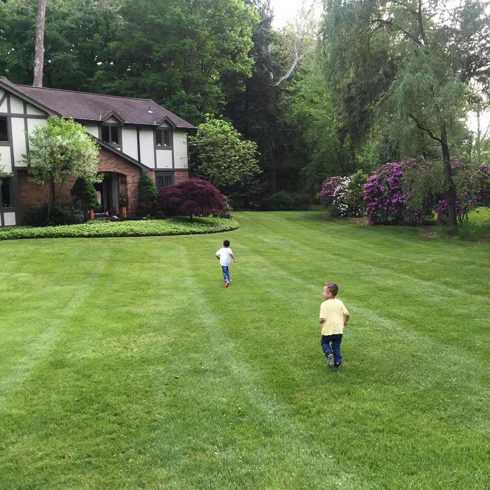 We spent Easter week at Grandma and Pow Pow's house this year, where for almost 25 years I've sought refuge at various stages in my life. One of the greatest joys for me as a mother is seeing how it's become a refuge for you guys too. "Camp Sewickley Creek" as we like to call it is the place you are most excited to visit; the place we go to get away from New York with a backyard that looks like a national park and a creek running through it good for skipping stones and getting muddy. It's where you see deer in the early morning fog from the bedroom window and blue heron as you eat lunch at the kitchen table. Together you've seen rabbits and foxes and crazed red robins pecking at the window. Of course who could forget the time we called the police to report the rabid mama and baby raccoons on the other side of the creek, watching as they were put out of their misery by the cop with a terrible shot, then took photos inside the police car!